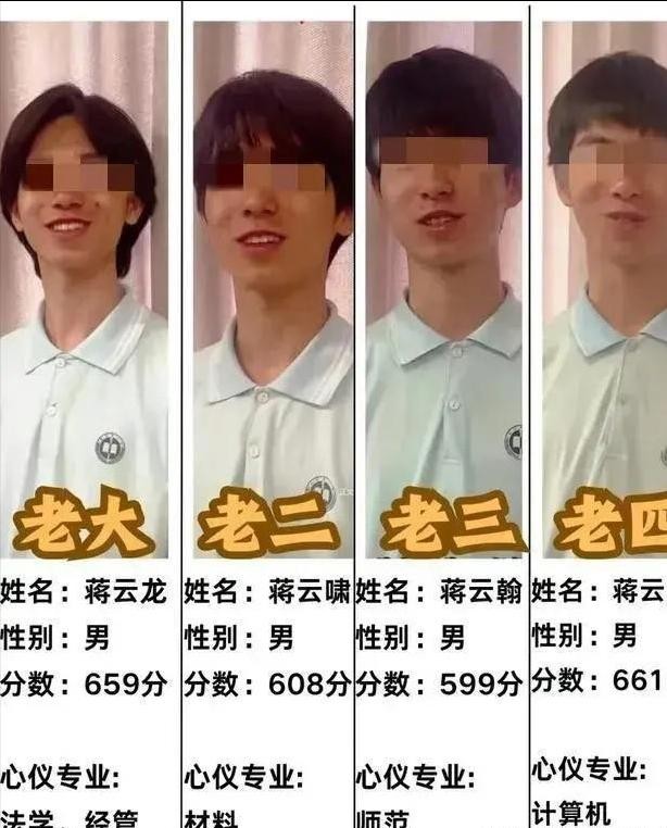 于是,深圳相关部门就以他们在深圳没户口为由,请他们一家走人。最后,“深圳四胞胎”回了长沙,四小子也在长沙的中学念书了。本来一切都挺好的,但2024年高考一结束,四胞胎又成了焦点。他们成绩好得不得了,平均分632分。但这一火,蒋受廉的那些事儿又被翻出来了。