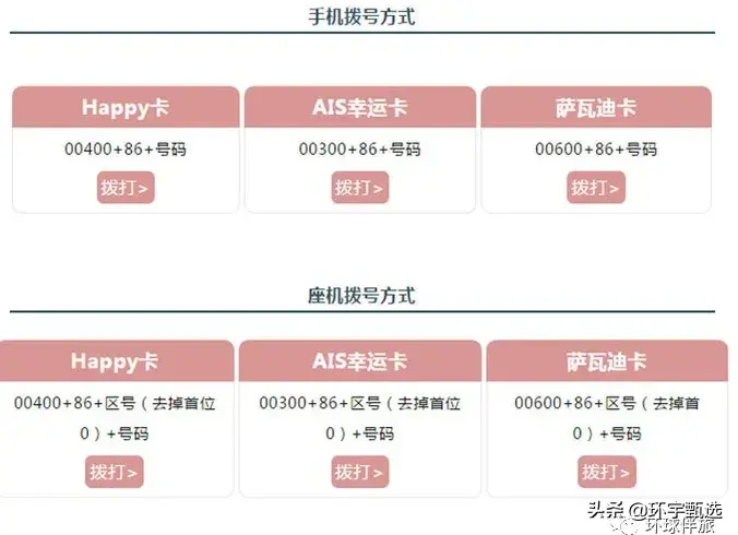 购买泰国运营商电话卡其实是最便宜省钱的方式,泰国共有三大通讯运营商,分别是AIS(泰国老大,相当于中国移动)、DTAC(泰国老二,在游客心中的地位最高)、True Move(泰国老三,相当于中国电信)。这三家运营商,又分别出了三种电话卡(幸运卡、happy卡、萨瓦迪卡)给游客。