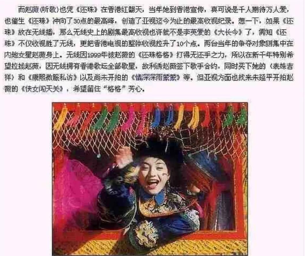 原来《还珠一》是亚洲收视冠军,后来被《还珠二》超了,历史收视率最高的电视剧。