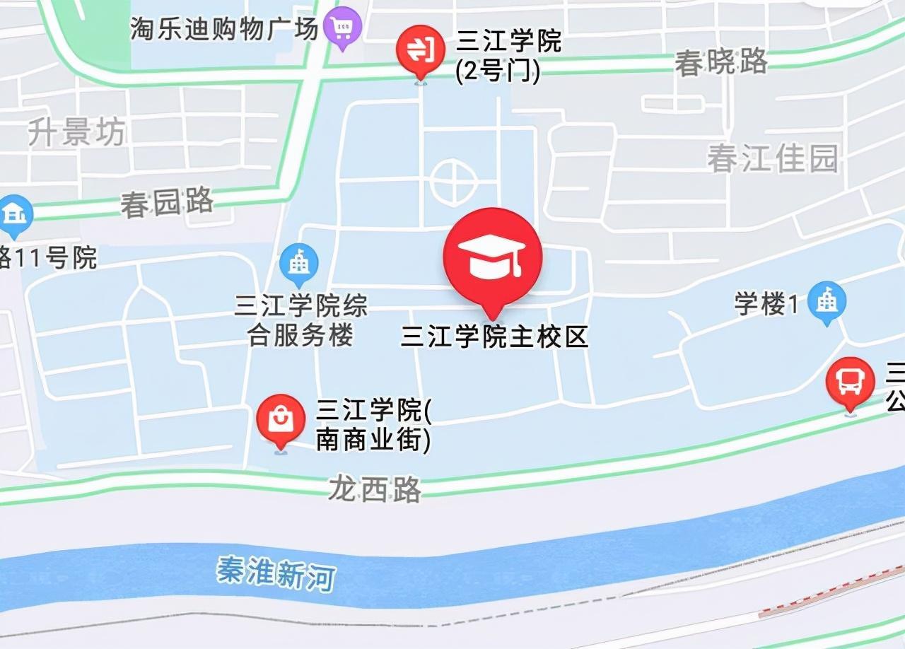 三江学院虽然是一所本科院校,而且有主校区、东校区、南校区和东山校区共4大校区,但是总面积只有1030.4亩,说句实话,现在随便新设一个高职院校也都一千多亩地的,而四个校区才一千亩地,却有2.1万人的在校生,这是严重影响学校的发展了。那么完全可以在现有校区扩建的,我们就拿主校区来说吧,南边是秦淮新河,其他三面是密密麻麻的小区和公路,已经没有任何扩建的余地了,那么只有另建校区了。