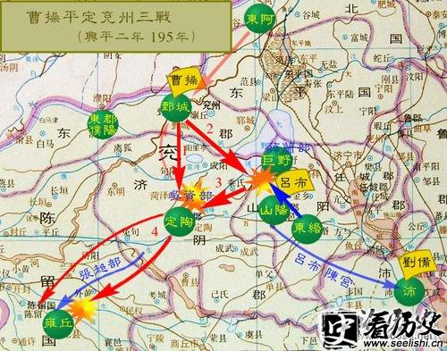 当时吕布一支军队驻扎在濮阳西边,曹操乘机以突袭方式击溃了这只队伍。随后,吕布和曹操交战数十回合,仍然难分胜负。此后,曹操和吕布进行长达数月对峙,直到195年,曹操以伏击方式击溃了吕布、陈宫,得以收复兖州。
