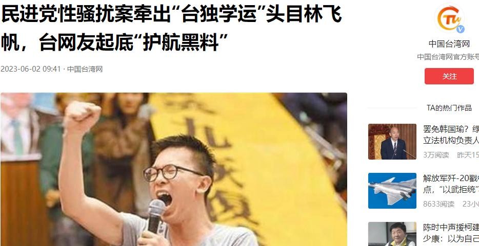 信源:民进党性骚扰案牵出“台独学运”头目林飞帆,台网友起底“护航黑料”——2023-06-02·中国台湾网