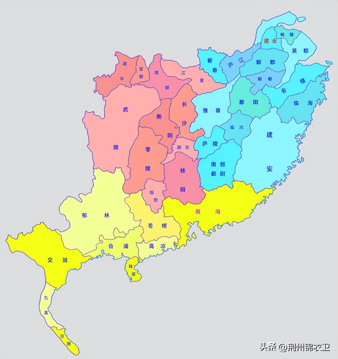 这个是根据一位大佬的作品,加工了一下做出来的简化图,主要是对于三国时期,魏蜀吴三方所占州郡单独列出后的版图,是从当时的全国地图中,单独拎出来的,只精确到郡一级的简要图。