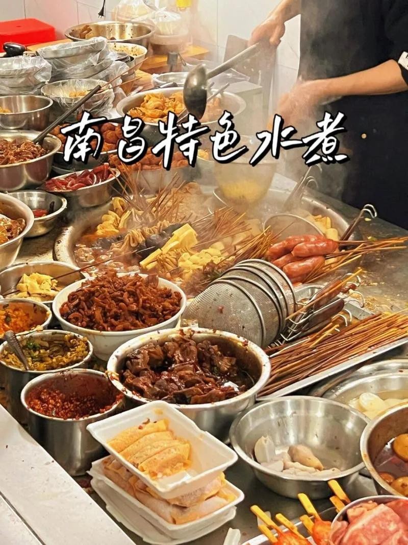 最后是南昌街头常见的水煮。和四川的水煮肉片相似,但南昌的水煮有着自己独特的风味。将豆芽、豆皮、午餐肉等食材放入沸水中煮熟,再淋上特制的辣椒油、花椒油,最后点缀上葱花、香菜等调料。水煮麻辣鲜香,吃起来鲜辣爽口,是南昌人民喜爱的早餐之一。