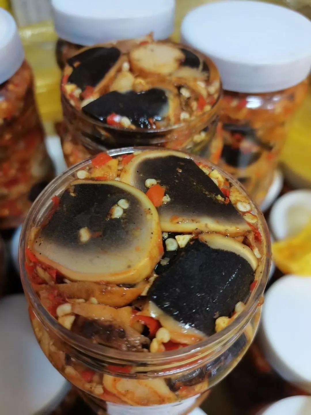 然后就可以进行装瓶了,装瓶储存好后,就可以一年四季都吃到这种云南独有的马皮泡菌了。