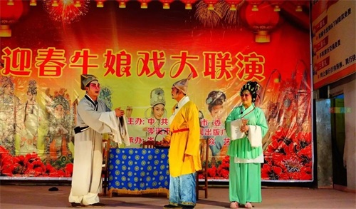 牛娘戏生活气息浓厚,不少演出队都有即兴应景的习惯,这种唱词和道白随口而出的特点,被称之为“爆肚”,是牛娘戏的一大特色。
