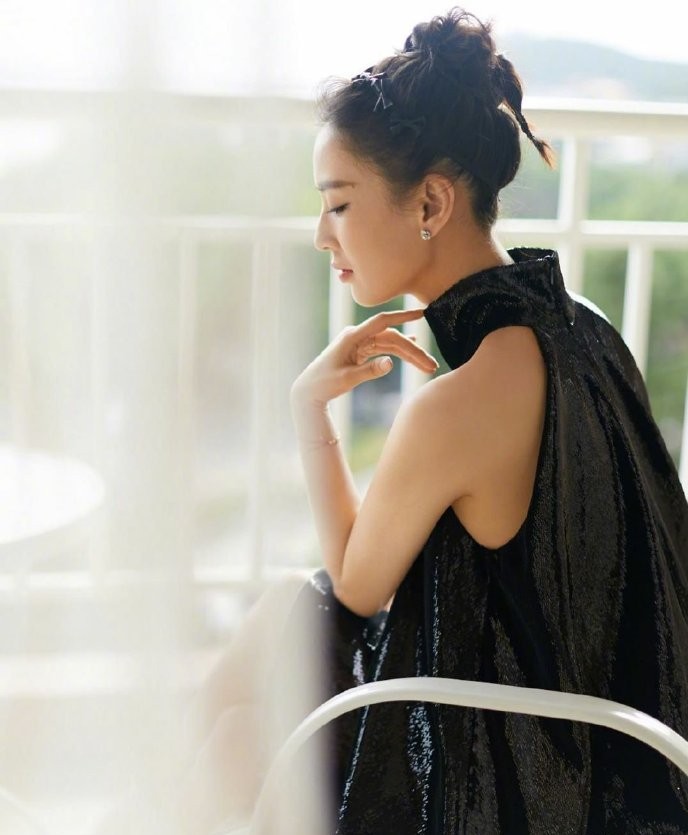 这是黄圣依坐在阳台的白色靠椅上的照片。她的侧颜也是很漂亮的,也凸显出她的典雅高贵,娇艳妩媚。