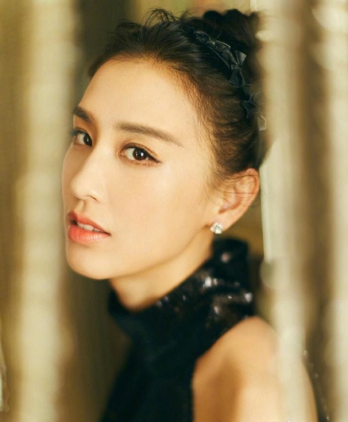这是黄圣依的大头照片。我们看到她头发梳起丸子头,头上戴着黑色头花,耳朵戴着银色碎钻;她有着瓜子脸和樱桃小口,明眸皓齿,顾盼传情。