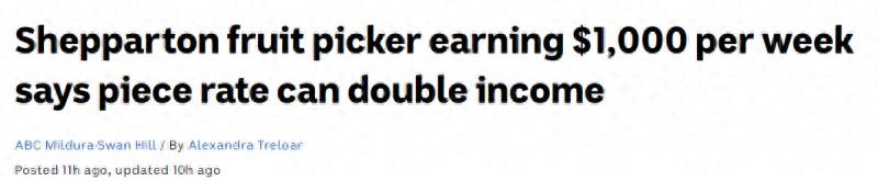 他说:“收成好的时候,你每周可以赚1000澳元以上。”“我强烈鼓励其他人来做这个,你可以想怎么工作就怎么工作,还能有很好的收入。”