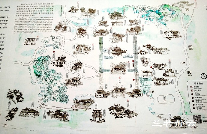 如今的泉州少林寺规模宏大,不仅占地面积广,建筑群的落差有几十米,依次分为五个平台,气势非凡。那天早晨我爬过了九日山,下午参观少林寺时竟然觉得楼梯登得脚酸。