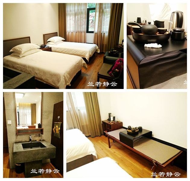 房间比较小,装饰简洁充满禅意,没有电视机,也没有风景,号称“观心居”,就是让住客静心下来观一观自己的内心。我比较喜欢那张榻,可以盘腿坐着喝茶。