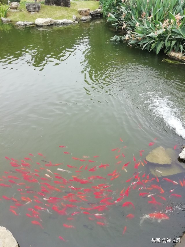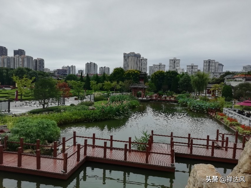 景区内一侧有湖泊,鱼翔浅底,清风拂面,白云千载空悠悠。