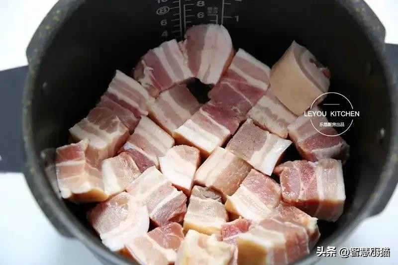 操作起来也是so easy,先把五花肉切成块状,丢进电饭锅,按下煮饭键,让它自给自足地煎出油脂。这一刻,厨房里弥漫的肉香,简直让人口水直流。