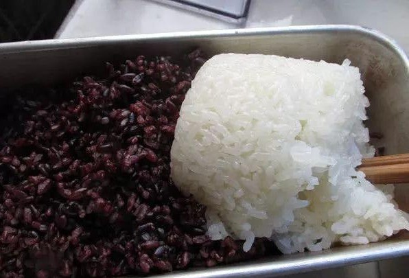 3.蒸好的黑米中我加了有五分之一的白糯米,这样发酵效果会更好。如果用的黑米粘性很好,可以不用白糯米,纯用黑米就行了。