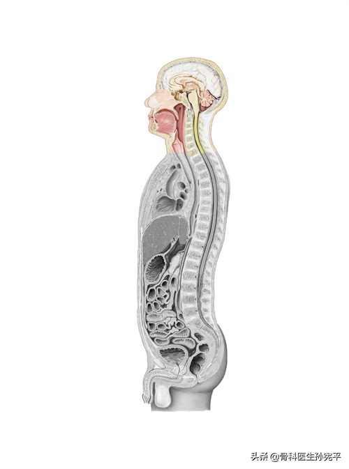 隆椎(C7):棘突最长且不分叉,体表容易触及,常作为体表定位使用。颈7横突孔可有可无,一般不通过椎动脉。椎动脉的走行:颈6横突孔→颈1横突孔→枕骨大孔→颅腔。