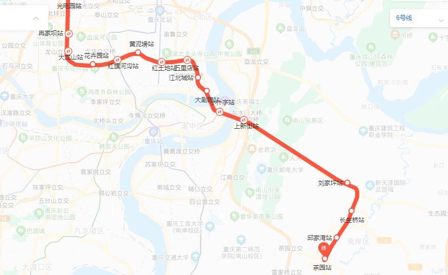 从茶园我们可以通过6号线乘坐3四个站就能够抵达解放碑,五六个站就可以抵达重庆的江北嘴,这些都是重庆的中心。