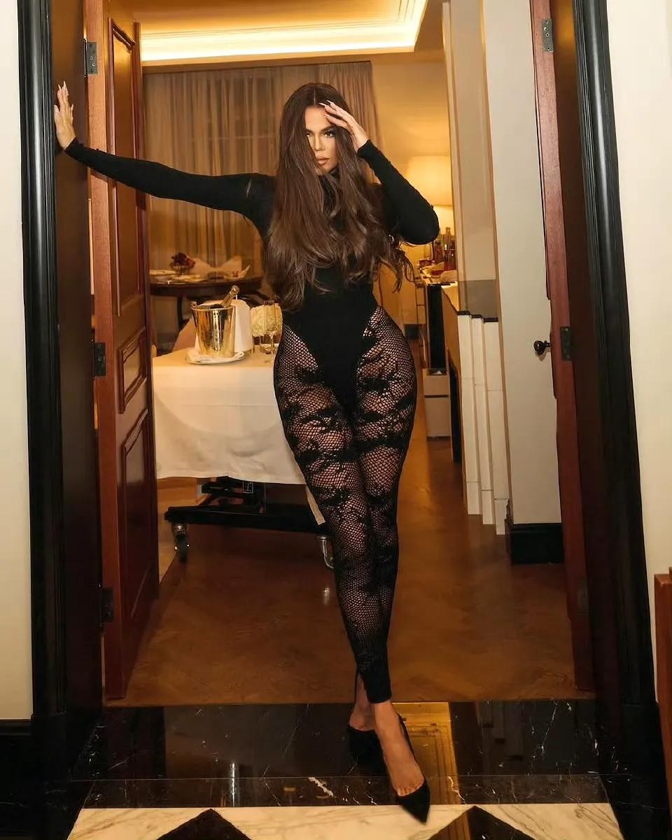 Khloe Kardashian的身材堪称完美。她的曲线玲珑有致,在黑丝吊带的衬托下更加突出。在她的照片中,我们能看到她优雅的颈线、纤细的腰肢以及丰满的臀部线条。这些都是她身材美的标志,也使得她的照片更具有魅力。