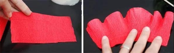 2、用一张大概25x7CM的皱纹纸,纵向拉伸开。再准备一根比木棍稍长的纸绳,将其打开。
