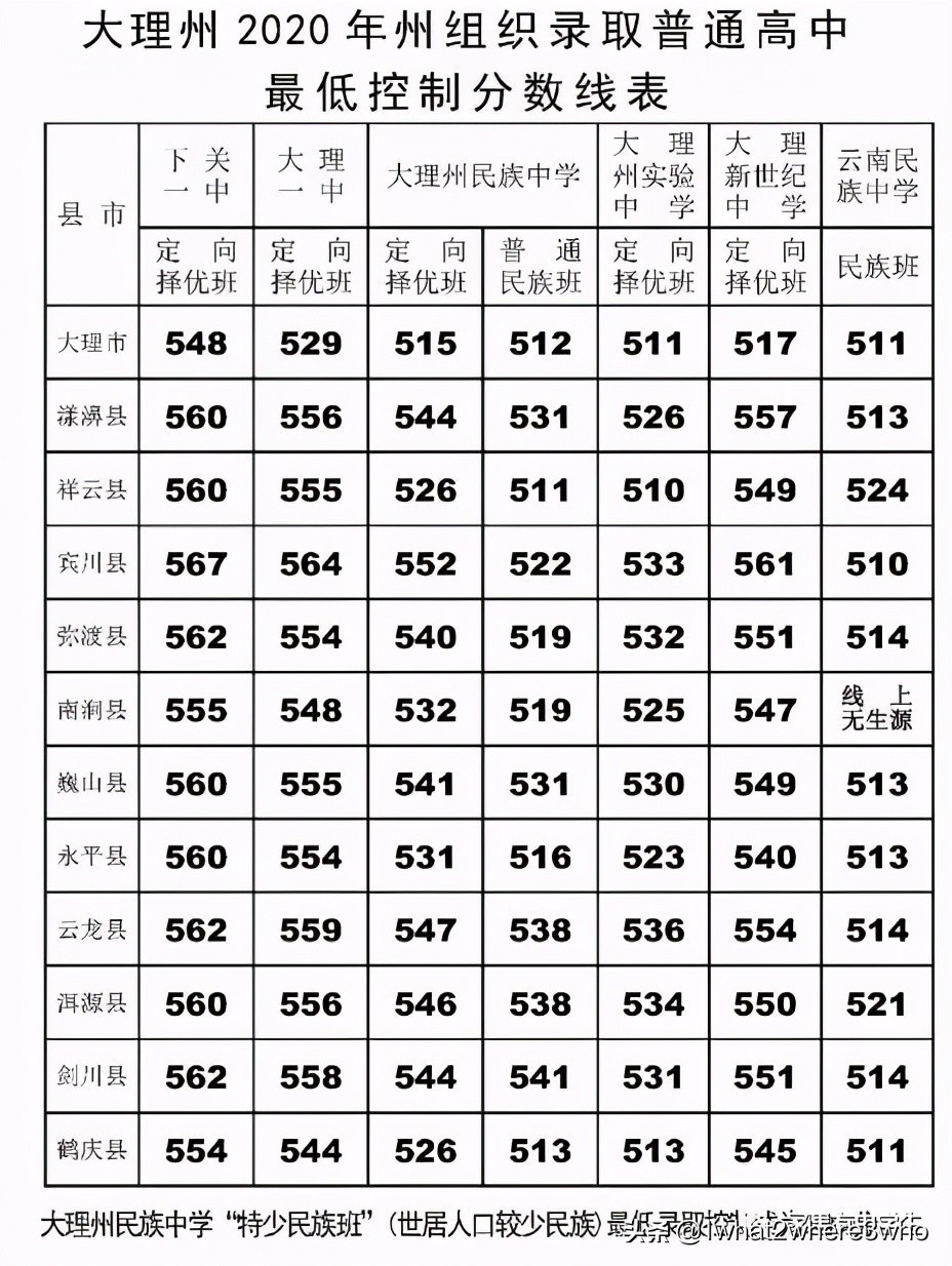 普通类高中最低录取控制线为510分,其中州民中“特少民族班”最低录取控制线为500分。