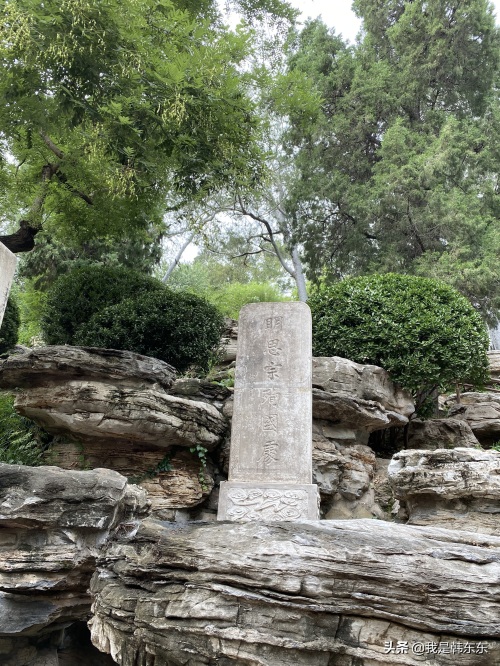 前面低处是“明思宗殉国三百年纪念碑”,立于1944年,正是明朝灭亡整三百年,碑文由曾任北洋政府教育总长的著名藏书家傅增湘撰写;后面高处是“明思宗殉国处”碑,立于1930年。公园里的标志是“崇祯自缢处”,那么崇祯皇帝是自缢还是殉国呢?朱由检一生勤政,但已无力回天,他在出宫前就写好遗诏:“朕已丧失天下,不敢下见先人,亦不敢终于正寝”。最后在景山自缢,“天子守国门,君主死社稷”,他没有苟且偷生,也不愿被掳受辱,也算以身殉国吧。