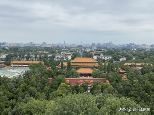 继续往上,最高处是气势雄伟的万春亭。这里是北京城中心,也是南北中轴线上的最高和最佳观景点,视线极其开阔,环看四周,京城美景尽入眼底,堪称“京华揽胜第一处”。
