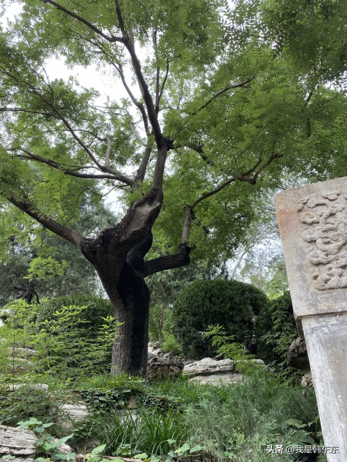 山上的歪脖子槐树并非当年古槐。文革期间,老槐树被当作“四旧”砍掉,1981年原在址上移栽了一棵槐树。1996年又重新园外移植回一株有百年老槐代替1981年移植的小槐树。