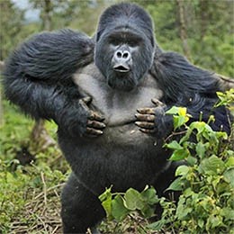 银背猩猩在年幼的时候身体毛发的颜色呈现黑色,但成长到成年之后背部的毛发颜色会变为灰色,这也是银背大猩猩名字的由来。银背大猩猩是除了黑猩猩之外与人类最相似的灵长类动物,它们的前肢比后肢长,前肢也更加的灵活,银背大猩猩之间的打斗都是通过前肢进行的。