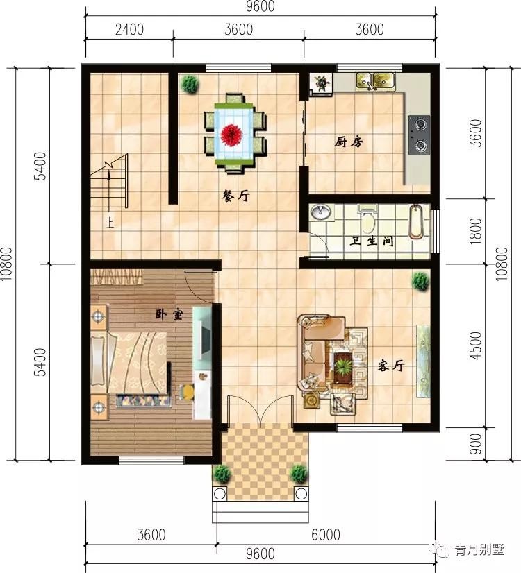 占地尺寸:9.6米×10.8米