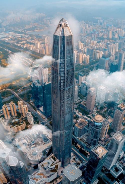 平安金融中心原设计为660米的高楼,顶部有一个尖顶,按此设计,建成后将成为中国最高的建筑,但由于航空限高,迫使高度被限制在600米以下,顶部的尖顶被取消,最终以599米封顶,无缘中国第一高楼。这座建筑的116层有一个观景台,是目前世界上第三高的观景台。