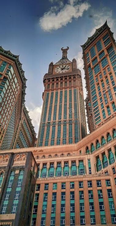 麦加皇家钟楼高达601米,建于2012年,共120层。钟楼的4个侧面各有一个大钟,这些钟是目前世界上最大的钟。钟楼的最上层是一座博物馆,里面有一个室外观景台。