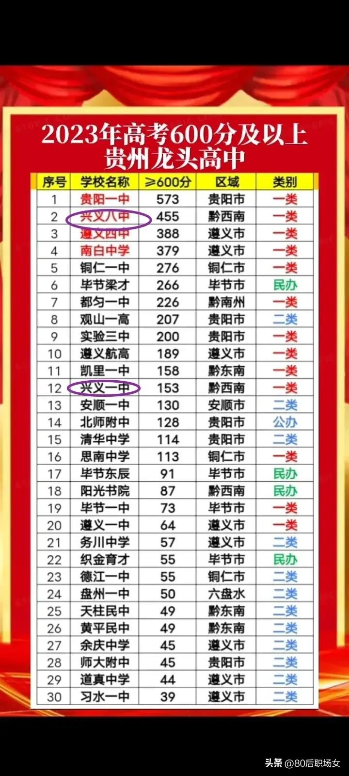 贵州省著名高中竞争,兴义八中&兴义一中,花开并蒂&一枝独秀?