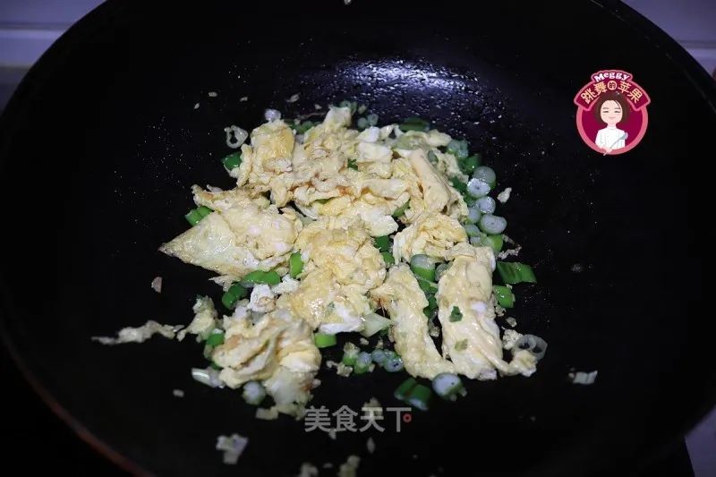 1、鸡蛋炒熟盛出备用,可以让色泽金黄,口感更嫩。