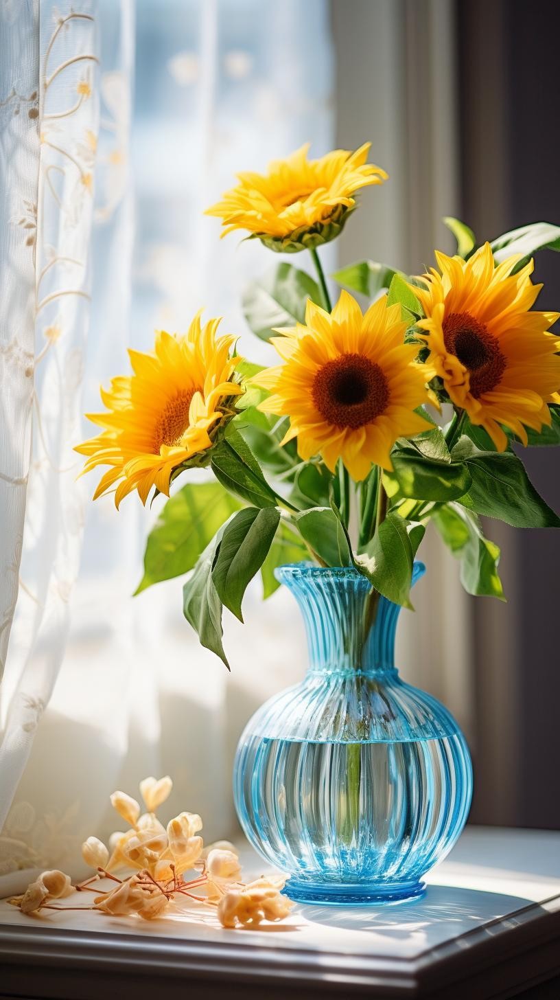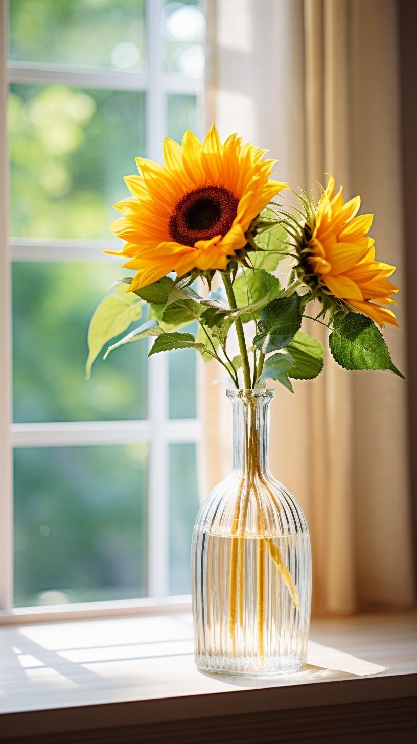 向日葵也是一种非常适合作为花瓶中观赏的花卉,采摘下来的向日葵,只要用清水养着,如果你想多养几日,在清水中舀2勺白糖,就可以保持好几日的新鲜,给家里增添不少色彩。家里如果没有合适的花瓶,吃剩的果汁的饮料瓶也是可以的,它并不挑容器,只要有水就可以绽放。
