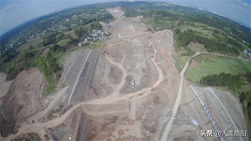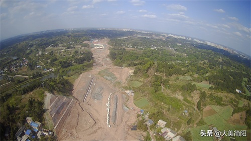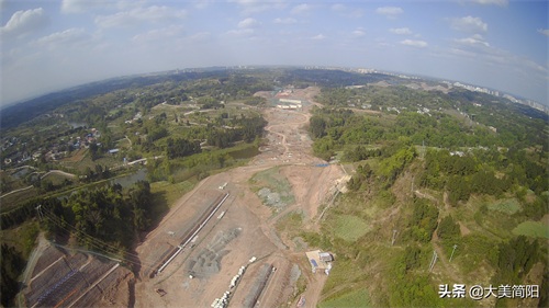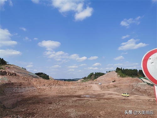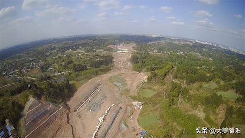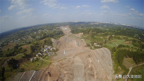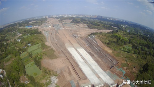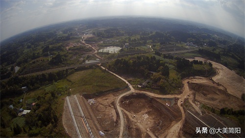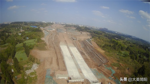 空港大道:成渝高速至简阳城区段、远处简阳城区、中间段为葫芦坝互通、然后有一段都在铺路基咯!