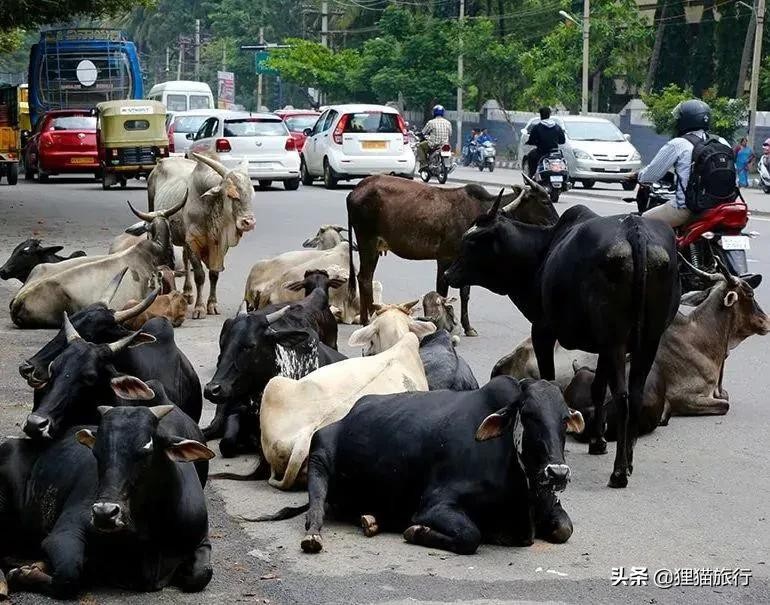 据了解新德里每天有多达3.5万头牛在街上闲逛,这些牛有的专心致志地啃路边的绿化带,有的牛吃饱了就卧在马路中间休息,还有的牛三五成群在路上游荡。