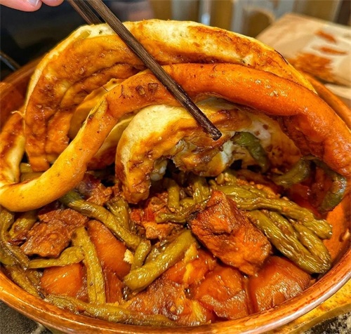 豆角烀饼是锦州特色美食,又叫豆角盖被,其特点是:烀饼色泽如玉,薄如丝绢,筋道十足,配菜味道浓郁纯正,豆角软烂、土豆绵密、排骨酥烂,饼吸收了菜的汤汁,味道鲜香 。