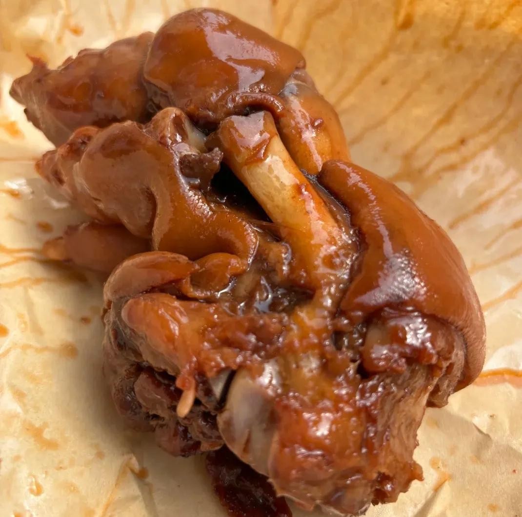 北镇猪蹄是锦州北镇的传统名吃,制作加工技艺起兴于清道光年间 。其特点是:五香气味浓郁,色泽枣红肉质雪白,皮筋熟嫩,咸淡适口,油而不腻,入口香而不腻、咀嚼筋道有劲,素有“东北小熊掌”美称 。