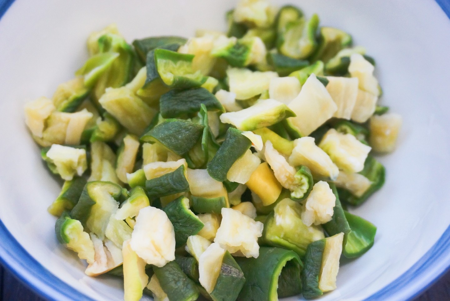 5.将晾好的萝卜干放进开水中煮1分钟,捞出沥水,再切成丁。