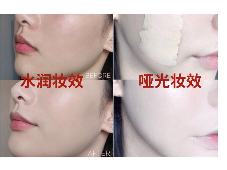 哑光妆效的粉底产品最大的特点就是因为所含的油份比较少,所以上脸后更加清爽不黏腻,同时还有一定的控油效果,上脸后呈雾面哑光的质感。