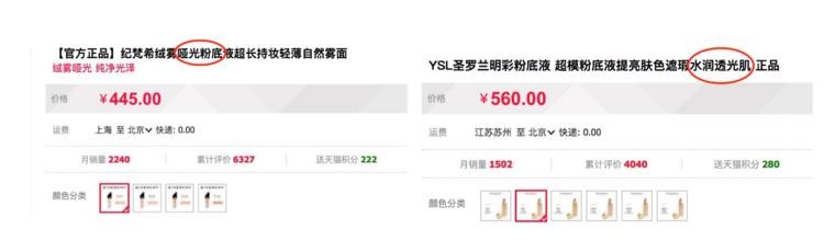 判断的时候也很简单,一般商品名称里都会表明自己是哪种妆效,如果名称中没有,商品介绍里也会清楚的写出来。