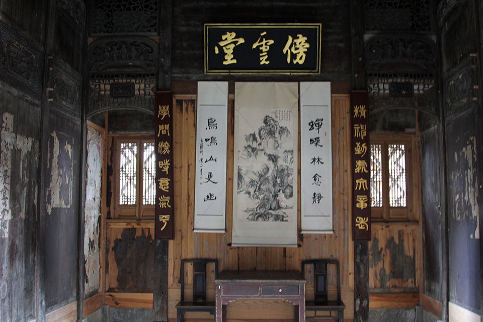 承志堂建于清咸丰五年(1855年),是清末大盐商汪定贵的住宅。整栋建筑为木结构,内部砖、石、木雕装饰富丽堂皇,总占地面积约2100平方米,建筑面积3000余平方米,是一幢保存完整的大型民居建筑。全宅有9个天井,大小房间60间,136根木柱,大小门窗60个。全屋分内院、外院、前堂、后堂、东厢、西厢、书房厅、鱼塘厅、厨房、马厩等。承志堂最令人叹为观止的是它的支柱、额坊、拱棚、门窗等无处不附以精美绝伦的雕饰,既富丽堂皇,又气势非凡。承志堂正厅横梁、斗拱、花门、窗棂上的木刻,工艺精湛、层次繁复、人物众多,堪称徽派“三雕”艺术中的木雕精品。