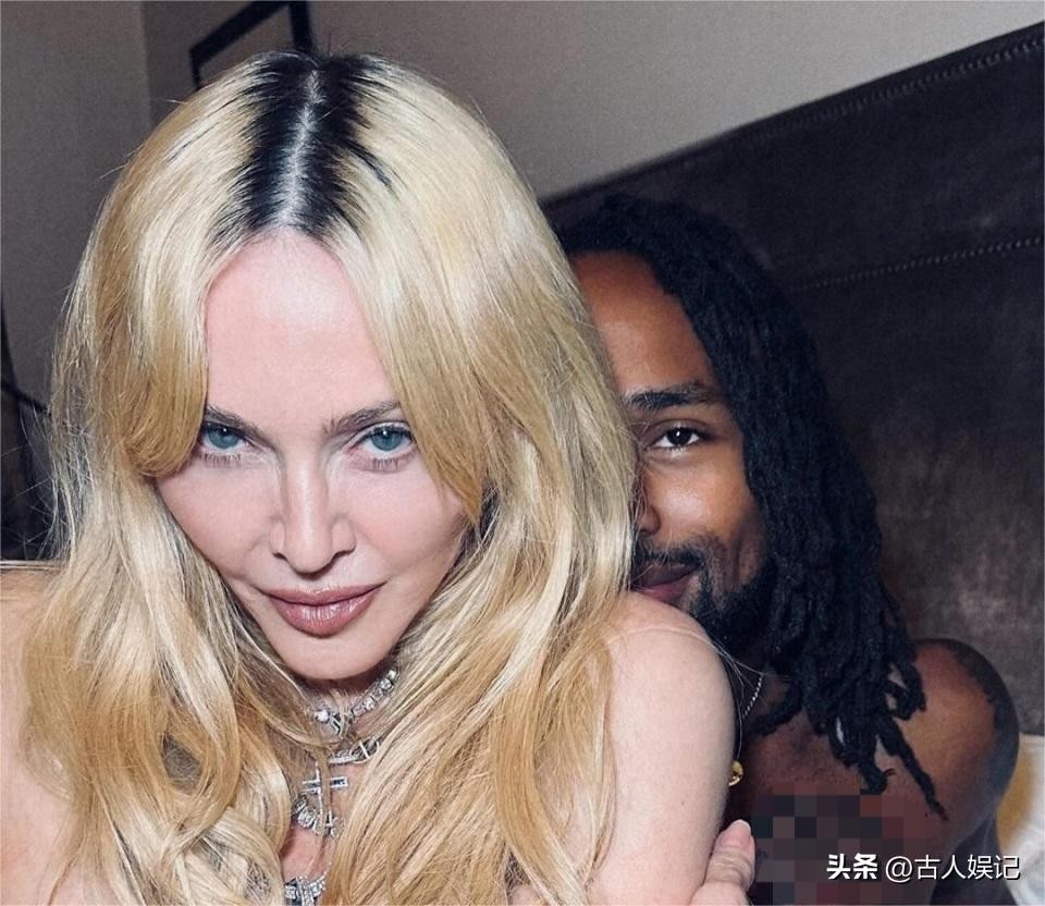 66岁麦当娜被29岁黑人男友抱腿上,白到发光还无皱纹,却引发争议