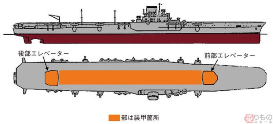 因此,在航空母舰大凤的飞行甲板上,装备了能够承受高度700米500kg炸弹俯冲轰炸的重装甲。