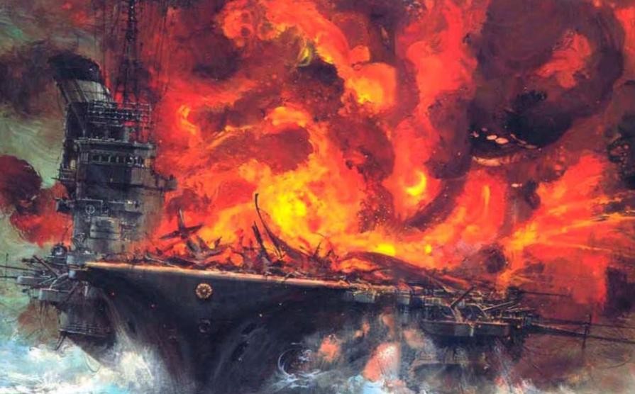 航母的损管此时完全没了反应,他们损失惨重,而且消防阀也根本不出水,损管人员纷纷绝望地倒毙在滚烫的装甲甲板下。
