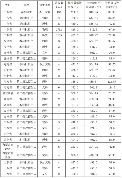 壹、主要在广东招生,录取率、报到率略低