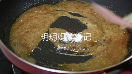 7,转小火看到颜色变黄加入20克黄油,这一步很重要,千万别熬过了
