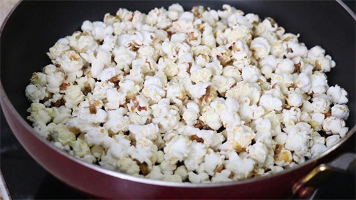 5,等锅里没动静再打开盖子,这样爆米花就做好了