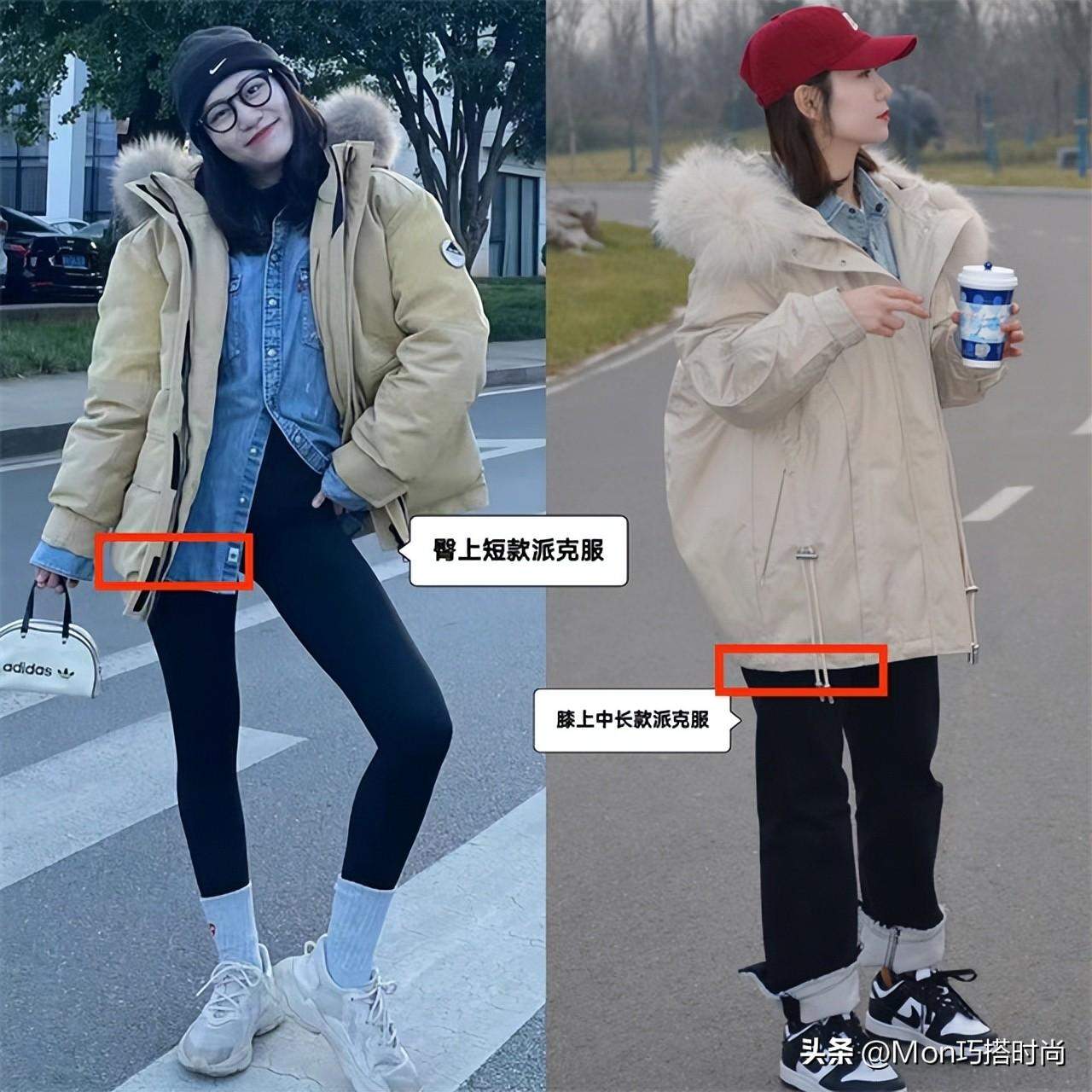 短款派克服就选臀部附近的长度,中长款派克服选直筒型、利落茧型或有抽绳设计的高腰X型都入股不亏。
