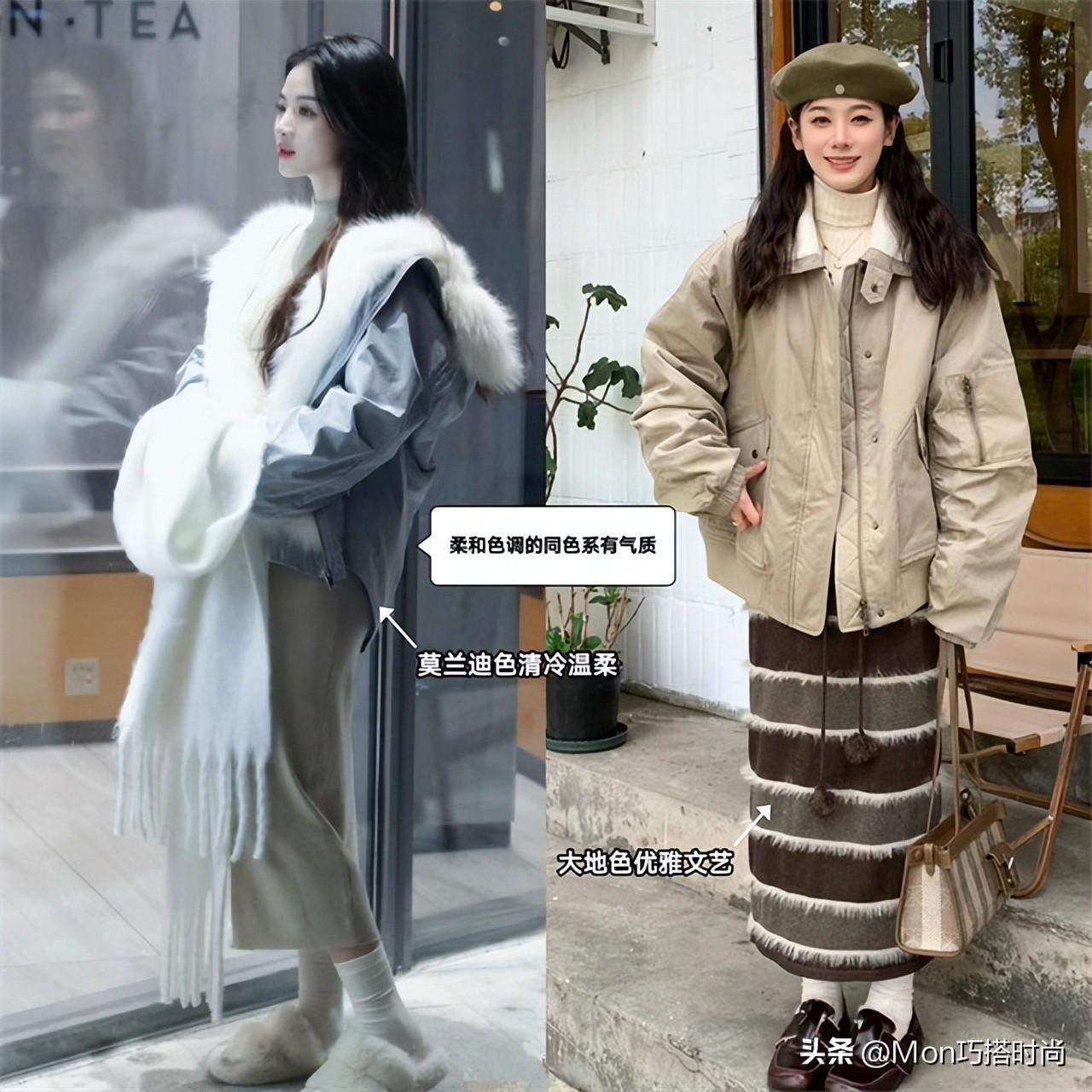穿好派克服,更不需要自身有出色的气质,学会利用低饱和或低亮度等柔和色调,进行同色系搭配,氛围感一秒get~