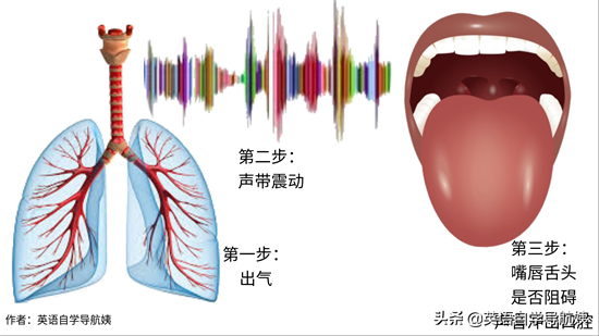 声音发出来走了三步——1. 肺部出气;2. 声带被气流震动起来;3. 声音从口腔冲出来。